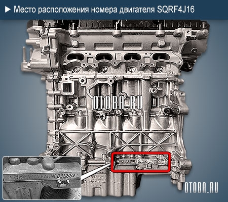 Номер двигателя SQRF4J16 расположен на стыке блока с поддоном