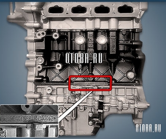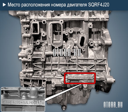 Номер двигателя SQRF4J20 расположен на стыке блока с поддоном