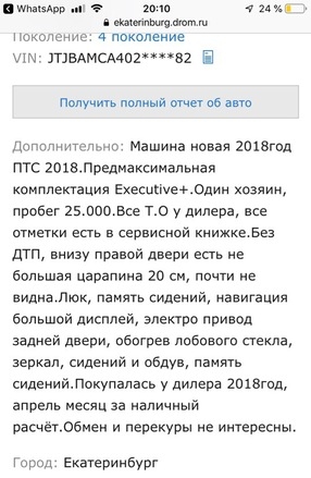 Машина 2018ого года с пробегом 25 тысяч км по цене 2690 тысяч руб в очень хорошей комплектации. Если машина окажется хорошей, планировалось поставить машину на автовоз и отправить ее заказчику. Чтоб вы понимали новая такая стоит почти 4 млн. Скидка в 1.5 млн руб за годовалую машину это какой то сказочный подарок. Что сразу не понравилось клиенту в разговоре с продавцом: продавец не захотел принимать оплату безналом, только наличкой.