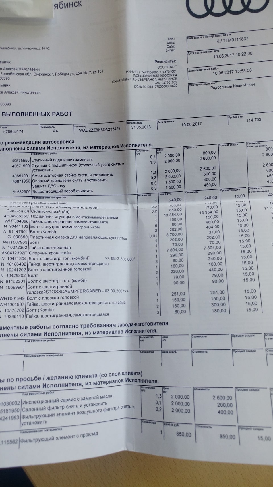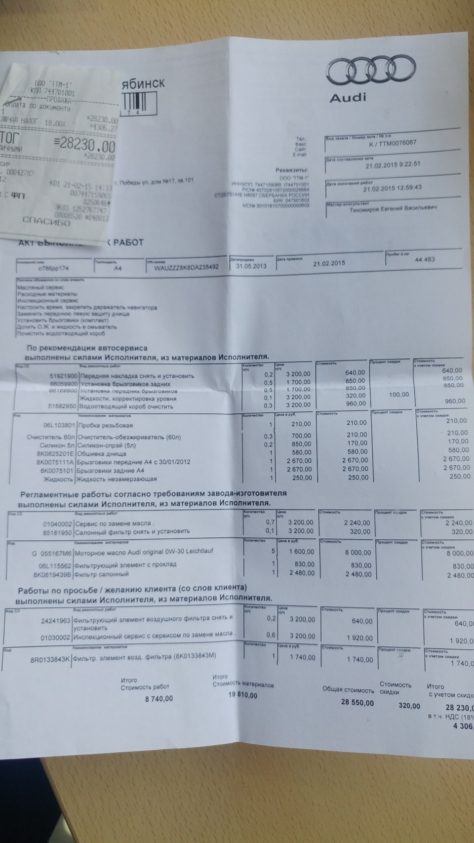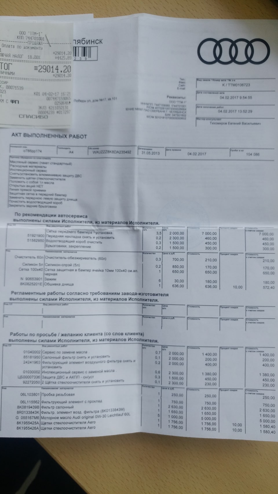 Вообщем, если вы купили ауди и хотите обслуживаться у официалов будьте готовы к тому, что иметь вас будут по полной. На одних болтиках (которые полюбому никто не меняет) и смазочных материалах можно нехило прилипнуть.