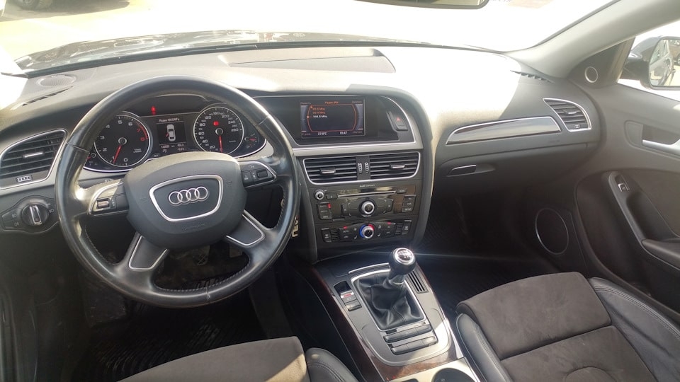Итак у нас Ауди А4, 2013ого года выпуска. У автомобиля был 1 собственник. Пробег на данный момент 130 тысяч км. Машина с двигателем 1.8 литра мощностью 170 л.с. на механической коробке передач.