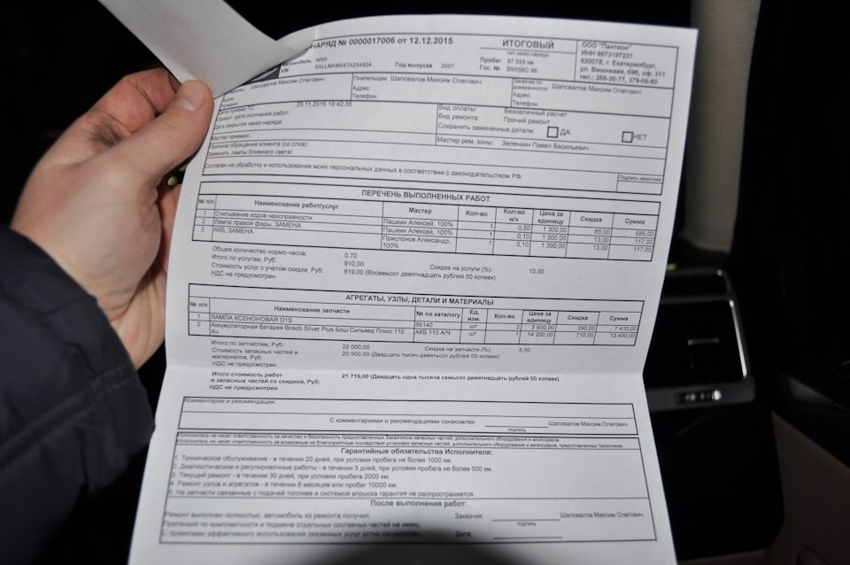 Так повезло, что собственник автомобиля сохранил все свои заказ наряды за время владения автомобилем. Он был вторым владельцем. Автомобиль был куплен при пробеге 90 тысяч км. До этого автомобиль обслуживался у дилера. Первые пять тысяч км все было хорошо, а потом пошло поехало. Итак только представленных заказ нарядов на сумму 210217 руб. Данные работы проводились при пробеге 95-105 тысяч км.